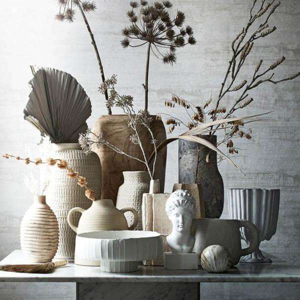 Deze populaire trend zie je ook terug in interieurstyling. Bij VT wonen zien we een aantal prachtige vazen combinaties terug wat haast een stuk stil leven in je huiskamer creëert.